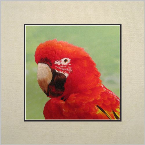 Susho, King Silk Art 100% Handmade Suzhou Silk Embroidery - Red Parrot Portrait - White Mat, No Frame 31101W Feature