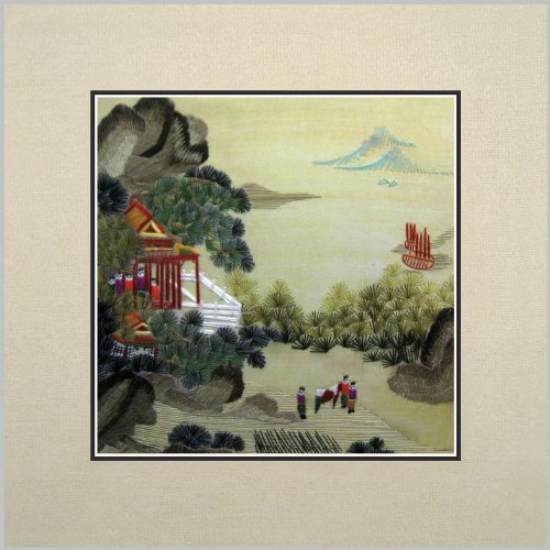 Susho, King Silk Art 100% Handmade Suzhou Silk Embroidery - Mountain Farm Folk - White Mat, No Frame 37005W Feature