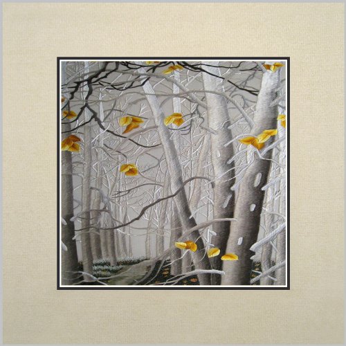 Susho, King Silk Art 100% Handmade Suzhou Silk Embroidery - White Birch Forest - White Mat, No Frame 37116W Feature