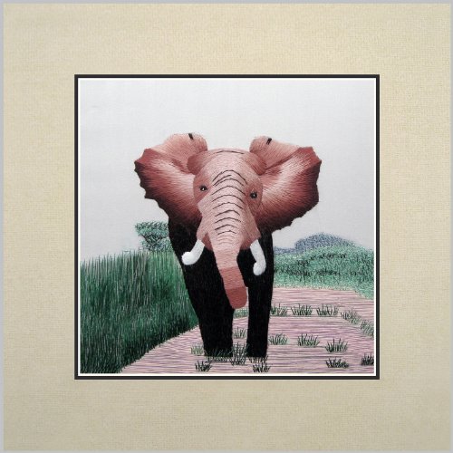Susho, King Silk Art 100% Handmade Suzhou Silk Embroidery - Portrait of an Elephant - White Mat, No Frame 34092W Feature
