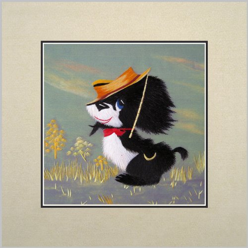 Susho, King Silk Art 100% Handmade Suzhou Silk Embroidery - Jaunty Puppy - White Mat, No Frame 34184W Feature