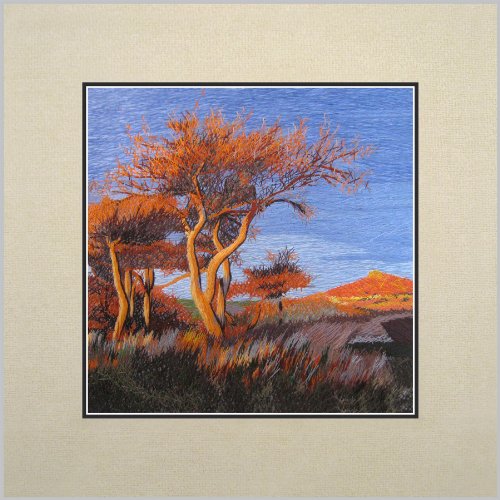 Susho, King Silk Art 100% Handmade Suzhou Silk Embroidery - Desert Trees - White Mat, No Frame 37176W Feature